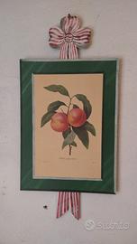 2 stampe botaniche su pregiato legno di pino ispirate all' artista Pierre Joseph Redouté ( 1955) noto per le sue accurate illustrazioni di fiori e frutti, raffiguranti un ramo con 2 pesche nettarine e un ramo di ribes rosso, con cornice verde e fiocco sempre di legno. CONSEGNA DIRETTA a Forlimpopoli Forlì Cervia NON SPEDISCO