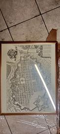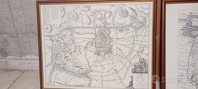 Vendo quadri decorativi con stampe storiche raffiguranti mappe, vedute urbane e planimetrie d’epoca (stile XVII–XVIII secolo) di Torino e Piemonte.