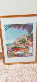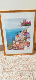 N. 3 stampe con cornice, riproduzioni di acquerelli con vedute della Costiera Amalfitana (Minori, Atrani, Positano). misura 50x70.