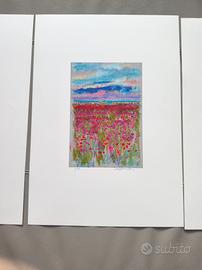 4 litografie originali certificate di Natale Addamiano dal titolo - Prati Fioriti - ottime condizioni. ideale anche per regalo natalizio.