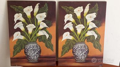 Coppia di stampe uguali con motivo floreale su cartone, spesso 1cm, descrizione come in foto; posso anche spedire.