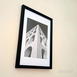 2. La Facciata del Palazzo di Civiltà. Formato A4, la parte centrale visibile è di 15 x 21 cm circa. Con la cornice in legno, vetro acrilico.
