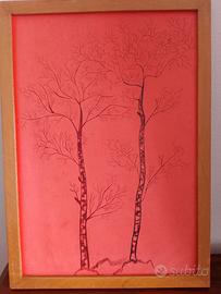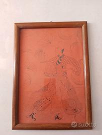 stampine giapponesi 26 * 36. e 31 x44 su fondo rosa antico cornice in legno e vetro.