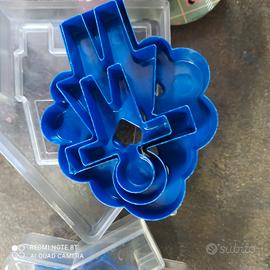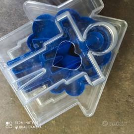 Stampi in per biscotti! Gli stampini in plastica trasparente e blu sono tupperware, quelli in metallo di altra marca.