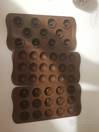 Vendo tre stampi da cioccolatini per totali 44 cioccolatini della Silikomart per passaggio a stampi di policarbonato.