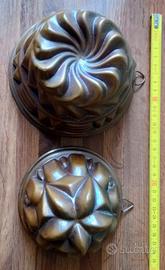 Due stampi per dolci in rame stagnato da appendere. Diametri di cm 15 e 12