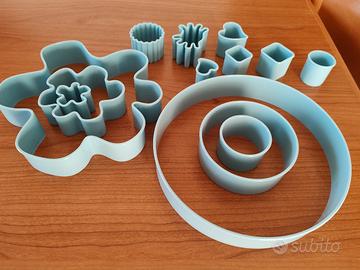 Set di nr. 13 pezzi di stampi per biscotti con scatola contenitore completa di coperchio. Nuovo mai utilizzato.
