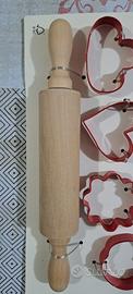 Kit composto da 4 stampini per biscotti e un piccolo mattarello di circa 24 cm