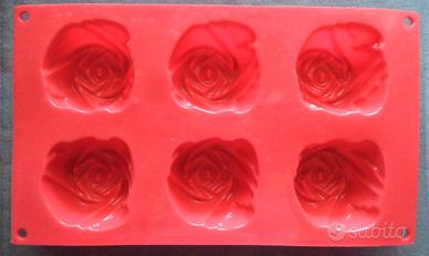 Stampo per 6 dolci a forma di rosa in silicone