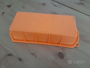 Stampo per plumcake in silicone colore arancione, dimensioni esterne 30 x12 cm, interne 24 x 10 cm, in ottime condizioni, usato solo una volta, vendo euro 6.