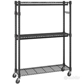 Ripiano Regolabile: il ripiano superiore di questo appendiabiti è regolabile in altezza, offrendo versatilità per creare una soluzione di archiviazione personalizzata che si adatta perfettamente alle tue esigenze. Che si tratti di organizzare abiti lunghi o indumenti più corti, il portapacchi può adattarsi.
