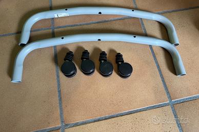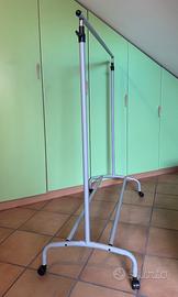 Stand appendiabiti con rotelle, in metallo color grigio chiaro, nuovo con imballo. Verniciata con vernice epossidica color grigio chiaro come da foto. Utilizzabile volendo anche come stendino, con supporto attaccapanni. Facilissimo da montare, libretto con istruzioni montaggio, necessita chiave a brugola da 5 per fissaggi. Dimensioni montata: larghezza cm 50, larghezza cm 106, altezza regolabile minima cm 125. Venduto con la clausola: Visto e piaciuto. Ritiro a domicilio o spedizione.