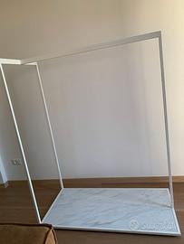 Stand appendiabiti di design. In metallo bianco con base effetto marmo, design minimal e molto stabile. Perfetto per camera da letto, ingresso o negozio. Usato pochissimo, in ottime condizioni. Dimensioni: 150 x 120 x 48 cm