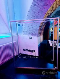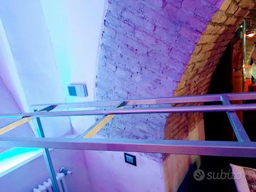 Stand appendiabiti di design, Ideali per arredo negozi o cabine armadio. Realizzati artigianalmente dal fabbro, sono in ferro verniciati a polvere color acciaio, dotati di ruote per facili spostamenti e base di appoggio bifacciale di color wengé/frassino in modo da abbinarli in base allo stile del negozio/casa.