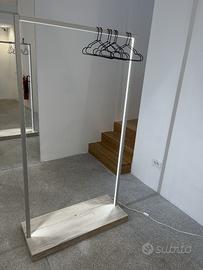Vendo 16 stand appendiabiti con LED integrato, realizzati su misura (custom made) per showroom e allestimenti moda professionali.