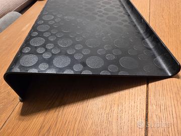 Lavabile, in plastica dura nera con fantasie sferiche, misura 45 x 30 x 6 cm circa in altezza, comodo porta PC, Tablet o Smartphone, con doppia possibilità di posizionamento.