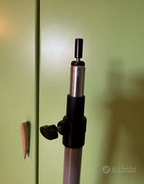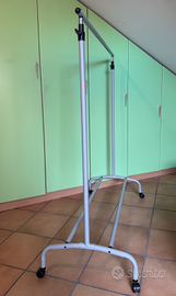 Stand appendiabiti con rotelle, in metallo color grigio chiaro, nuovo con imballo. Verniciata con vernice epossidica color grigio chiaro come da foto. Utilizzabile volendo anche come stendino, con supporto attaccapanni. Facilissimo da montare, libretto con istruzioni montaggio, necessita chiave a brugola da 5 per fissaggi. Dimensioni montata: larghezza cm 50, larghezza cm 106, altezza regolabile minima cm 125. Venduto con la clausola: Visto e piaciuto. Ritiro a domicilio o spedizione.
