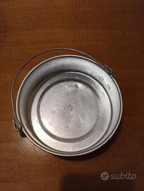 - una padella con manico in filo metallico rivestito in PVC che mantiene il calore