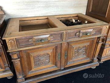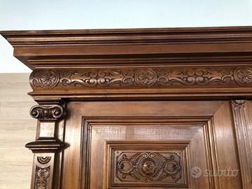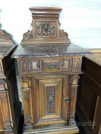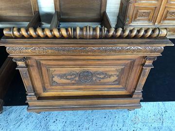 Splendida camera da letto completa, in stile "Hochdeutsch" con importanti rilievi ornamentali lavorati a mano sul legno. La camera, come visibile dalle foto, è così composta: 2x letti singoli (compresi di testiera e pediera) 2x comodini con superficie in marmo (ATTENZIONE, una delle due superficie è stata purtroppo rovinata durante il trasloco) 2x armadi 1 comò Consegna a mano o disponibile a spedire (costi di spedizione a carico dell'acquirente) Invio altre foto se necessarie.