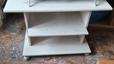 vendo struttura in legno stanza da letto con 2 comodini, lampadario,tenda e tavolino porta televisore con rotelle, da acquistare eventualmente anche singolarmente