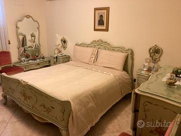 Vendo camera da letto stile veneziano,legno massiccio,fatta e decorata interamente a mano da artigiano falegname,originale dei primi anni 50. Ideale per ville antiche o palazzi nobiliari,o per chi ama lo stile. Tenuta benissimo,vendo solo per cambio tipologia.