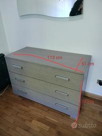 vendo, causa trasloco, stanza da letto composta da giro letto in legno (escluso rete e materasso), armadio a tre ante scorrevoli, 2 comodini e 1 comò. In rovere sbiancato. Tutto in ottimo stato. Smontaggio e trasporto a carico dell'acquirente.