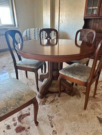 stanza da pranzo in noce con tavolo in legno noce e piede in marmo e legno con 6 sedie ancora con celofan ottimo affare ritiro a carico dell acquirente