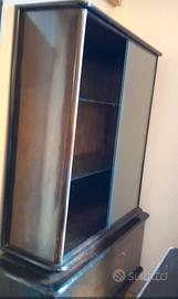 vendo stanza da pranzo completa di tavolo con sedie, vetrina, credenza con mobile specchio, mobile sparecchiatavolo, anni 30