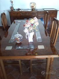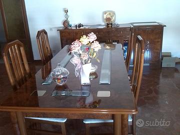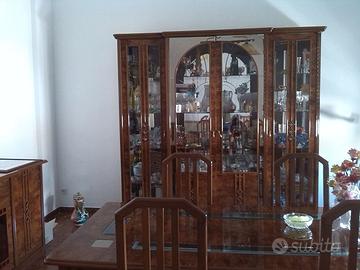 VENDO STANZA DA PRANZO NEO CLASSICA IN RADICA , ANCHE SEPARATAMENTE, VETRINA 4 ANTE CON FRONTALE A SPECCHI ,RIPIANI 5MM IN VETRO, CON FARETTI A 1000 EURO, TAVOLO CON INSERTI IN VETRO E SPECCHI + 4 SEDIE ANCORA INCELOFANATE A 600 EURO, CONTRO MOBILE 4 ANTE DI CUI 2 CENTRALI CON VETRI E RIPIANO 5MM CON FRONTALE E PIANO INFERIORE IN SPECCHIO , E 2 CASSETTI SUPERIORI A 300 EURO. STANZA DA PRANZO COMPLETA 1900 EURO
