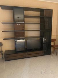 Stanza da pranzo / salone / soggiorno Tutt completo e abbinato - tavolo in vetro - 6 sedie - sparecchia tavola - parete attrezzata - lampadario Nero lucido e poco marrone