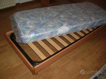 Vendo stanza da letto completa di n. 2 letti singoli con reti a doghe e materassi, n. 2 comodini con cassetto e vano a giorno, armadio 4 ante e 4 cassetti, cm 180x58x196h, appendiabiti e ripiano aggiuntivo. Tutti gli arredi sono tinta ciliegio con parti tinta acero e sono praticamente come nuovi