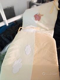 Cameretta azur giraffa in ottimissime condizioni, composta due mensole, un metro segna crescita, una piantana, un lettino completo di materasso, paracolpi e piumone, un appendino a 4 pioli