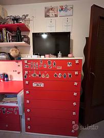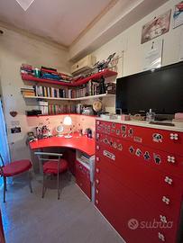 stanzetta colombini completa , armadio ponte e letto estraibile , cassettiera, scrivania libreria e 2 sedie