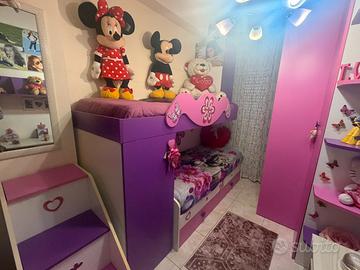 Vendo stanzetta femminile di colore rosa e lilla tutta completa come la si vede nelle foto, con i materazzi del letto NUOVI con al di sotto del letto 2 cassetoni grandi. È incluso anche il lampadario. Le uniche cose che non vendo sono alcuni peluche che si intravedono nelle foto ma NON TUTTI. Alcuni peluche sono inclusi nella vendita. LO SMONTAGGIO È A CARICO DELL’ ACQUIRENTE.