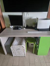 Cameretta Mondo Camerette ottima qualità ,pagata tanto perché ricca di mobili . Presenta 2 letti a castello con ruote quindi facili da spostare,armadio a ponte con ante superiori ai letti con aste che si abbassano. Un altro armadio lateralmente ai letti con ante lunghe e cassetti sottostanti. Ancora un altro armadio componibile con 2 ante e cassetti sottostanti. Il letto superiore ha 2 scrivanie estraibili, a scomparsa, in più ne abbiamo una terza a parte bella grande , come da foto. Presenta unico difetto di usura sul letto superiore sul legno,per il resto è tutto nuovo . Regalo nel prezzo 2 piumoni a sacco Ikea come da foto. regalo lampadario Ikea e tende in tinta con i piumoni .Regalo 2 ottimi materassi con un lato invernale e un lato estivo. Regalo inoltre sgabello verde e 2 pensili da usare come scarpiera . prezzo leggermente trattabile. per info contattatemi .