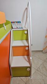 come da titolo vendo stanzetta per bambini in ottime condizioni PARI al NUOVO. Stanzetta del marchio SPAR con bambina armadio molto capiente, cassettiera, 2 mensole scrivania ,sedia ,scala con 3 cubi che fanno anche da contenitore molto capienti, base x letto piu protezione letto, in piu regalo anche il lampadario e la tenda.
