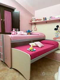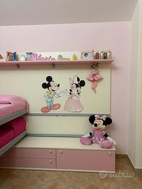 Attenzione: Si prega di notare che le decorazioni tematiche (come le figure di Minnie, gli oggetti personali sulla mensola) e i piumoni visibili nelle fotografie sono a scopo illustrativo e non sono inclusi nella vendita. L'offerta riguarda esclusivamente la struttura d'arredo come dettagliato sopra.