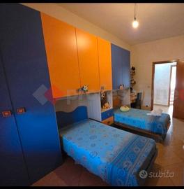 Vendo stanzetta a ponte in buono stato dotata di 2 letti con doghe in legno grande armadio a ponte casettiera con 3 cassetti scrivania con ripiano per computer e cassetto e due mensole.