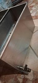 Station bartender bar mobile in acciaio ( due uguali disponibili), fatta su misura da appoggiare su banco bar. Ha tre barre sul fondo, removibili, per drenare l'acqua del ghiaccio e per facilitare la pulizia. A lato c'è un rubinetto, che si può aprire e chiudere per rimuovere l'acqua. Misure 70 x 44 x h 23 cm. Altri complementi, come 5 porta bottiglie in acciaio da agganciare al banco bar, 2 alzatine in acciaio drenante, per appoggio cocktail, su richiesta.