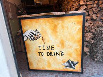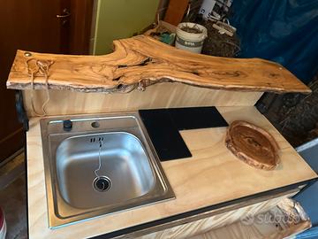 Station cocktail bar creata a mano con bancone in le va o di ulivo e speed rail in legno di ulivo cornice in ferro