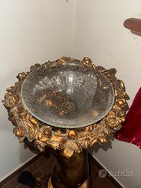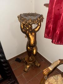 Statua grande angelo color oro con piatto portaoggetti sopra