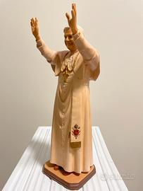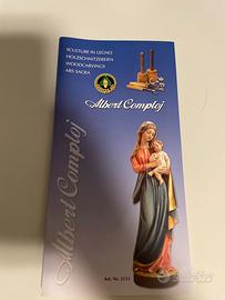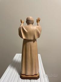 Vendo statua in legno intagliato raffigurante Benedetto XVI II, realizzata dall’artigiano Albert Comploj di Val Gardena, in perfette condizioni. Realizzata in legno naturale (finitura brunita) con dettagli dipinti (drappeggi, croce e stemma papale), completa di base. Altezza approssimativa 30-50 cm, con bollino dell’autore sotto la base. Include brochure originale, ideale per collezionisti o decorazioni religiose.