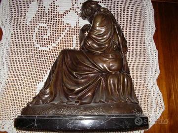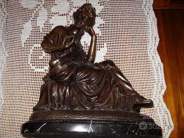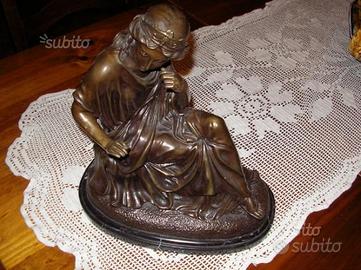 Vecchia e grande statuina in bronzo con base marmo cm. 35x20 con un'altezza di 40 cm. Molto pesante . Vedi foto.