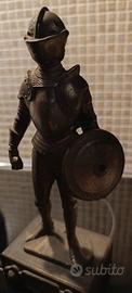 Statuina in bronzo "Cavaliere medievale con armatura" Basetta in legno, altezza cm 21.