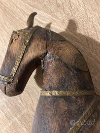 Cavallo Rajasthan proviene dal Marwari India intagliatoa mano con inserti in bronzo e rame presenta la testa incollata