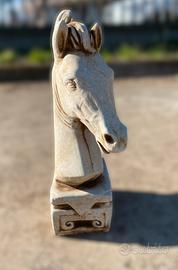 Statua cavallo, statua testa cavallo, scultura animale in cemento e pietra per arredamento interno ed esterno.