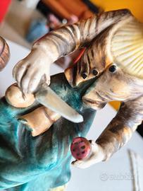 Vendo statua in ceramica coppia di contadini anziani vintage dipinta a mano. Ritiro a Milano.