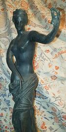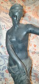 Vendo elegante statua femminile in stile classico accompagnata da una colonna/piedistallo in ceramica decorata a mano.