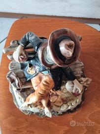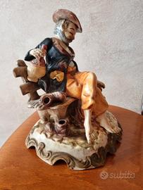 Statua contadino / ubriaco / clochard con vino Capodimonte Made in Italy Misure: 27cm x 23cm circa
