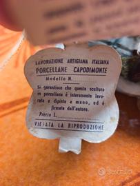 Si tratta di un oggetto in porcellana di Capodimonte, noto per i dettagli minuziosi, interamente lavorata e dipinta a mano, firmata dall'autore (Fornili), con certificato di garanzia e marchio reale dipinto sulla base.